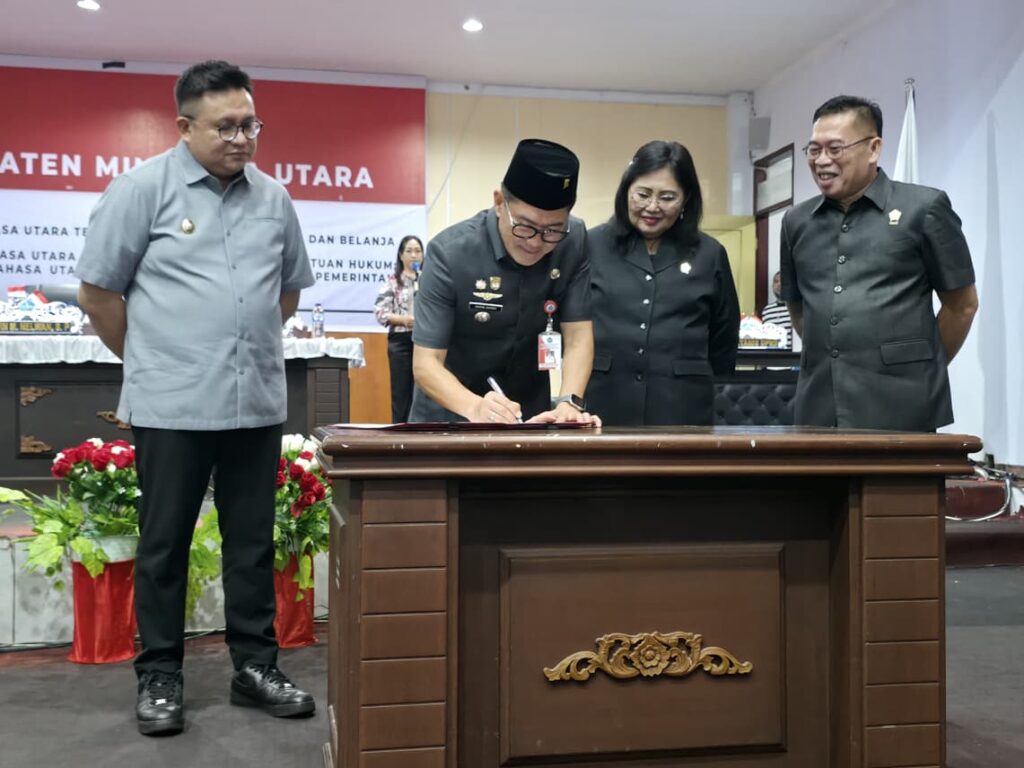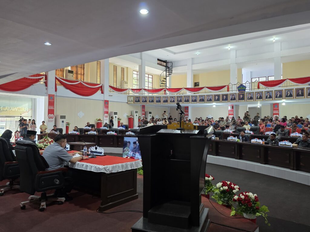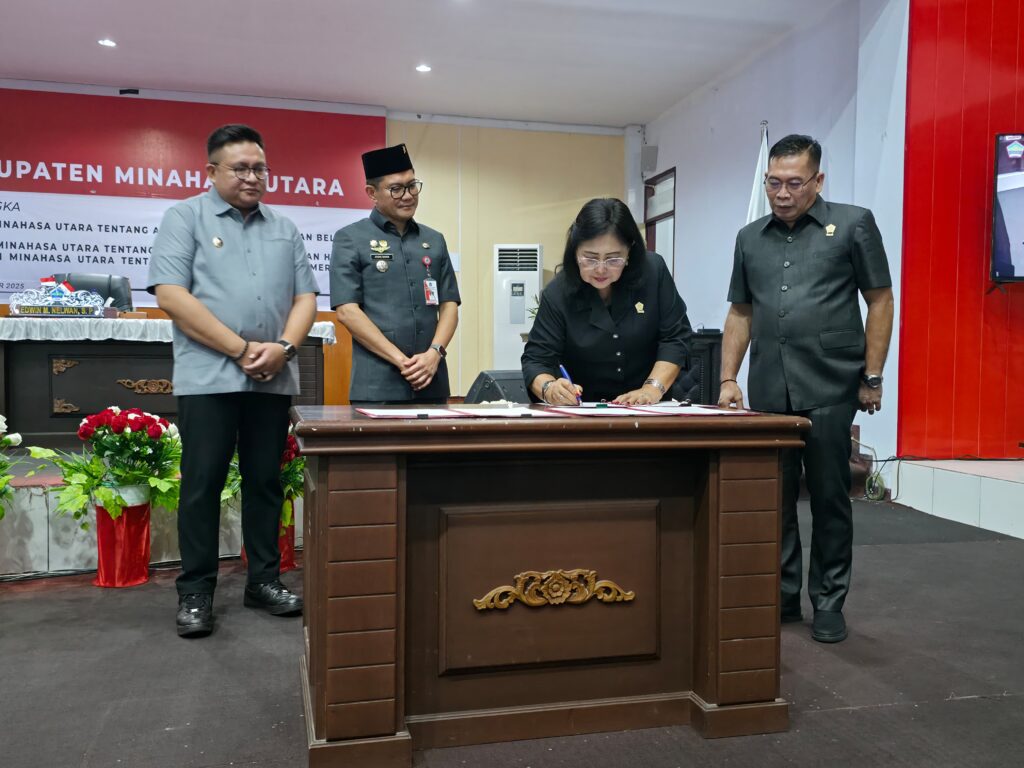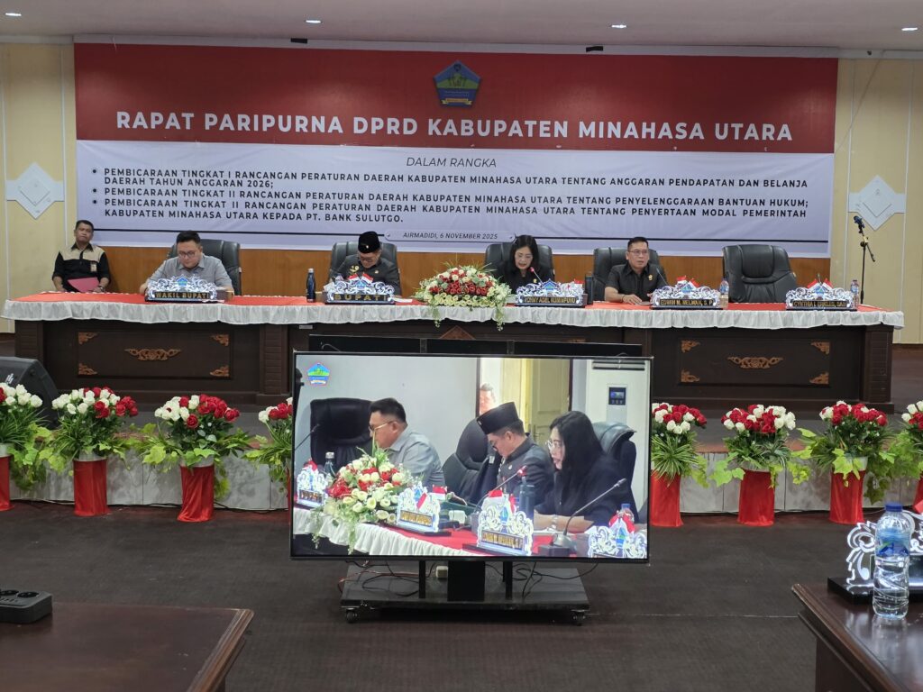 ReportaseIndo.comMINUT–Ketua Dewan Perwakilan Rakyat Daerah (DPRD) Minahasa Utara (Minut) Vonny Adel Rumimpunu SE (VAR) memimpin rapat paripurna membahas tiga Rancangan Peraturan Daerah (Ranperda) di Ruang Paripurna, Kamis (6/11).