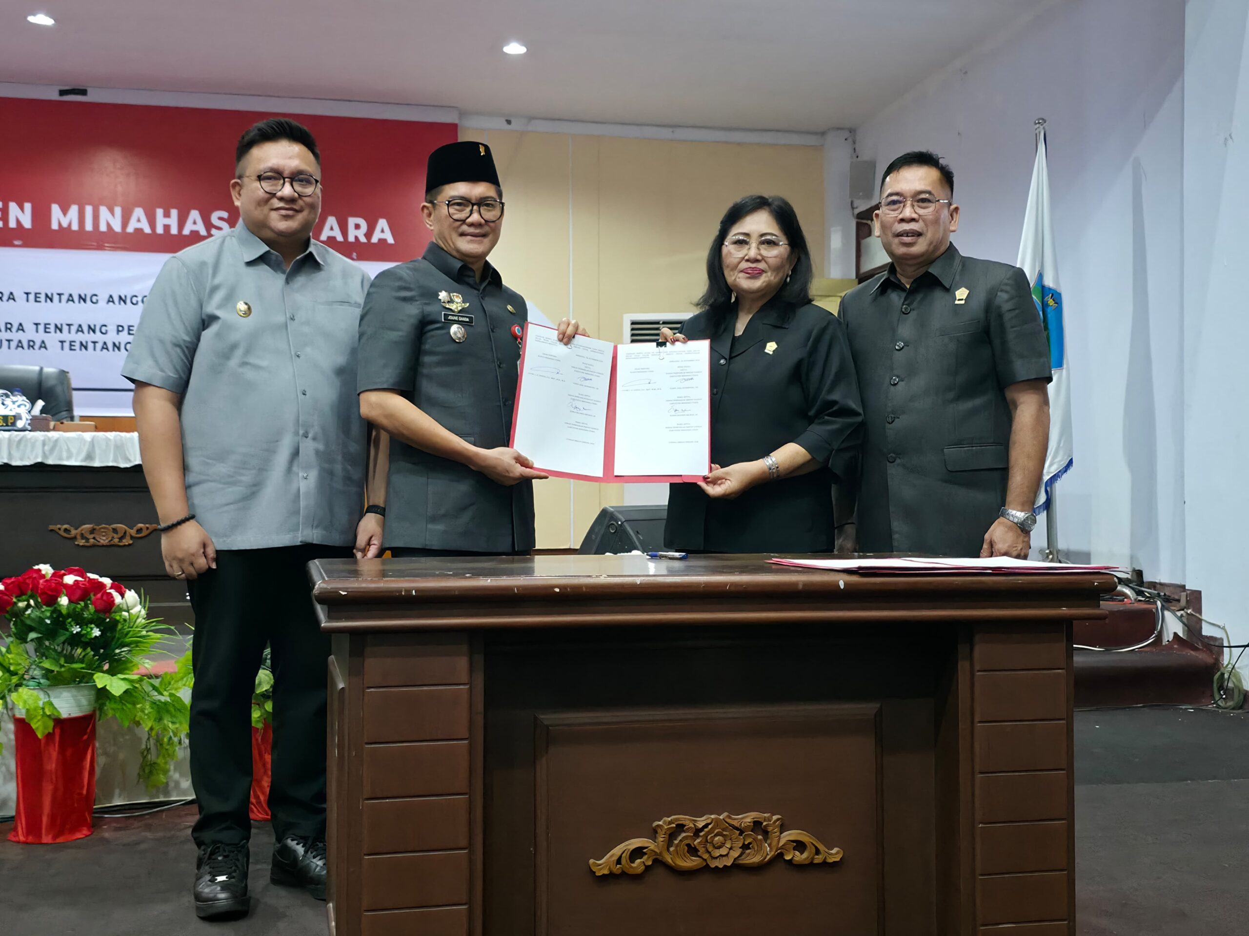 ReportaseIndo.comMINUT–Ketua Dewan Perwakilan Rakyat Daerah (DPRD) Minahasa Utara (Minut) Vonny Adel Rumimpunu SE (VAR) memimpin rapat paripurna membahas tiga Rancangan Peraturan Daerah (Ranperda) di Ruang Paripurna, Kamis (6/11).
