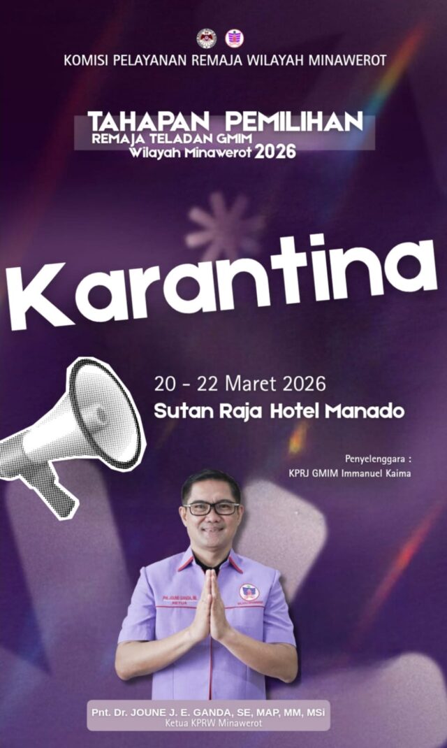 Sementara itu Koordinator Bidang Pelsis dan Retel KPRW Minawerot Kak Pnt Bright Walingkas di dampingi Ketua Ikatan Retel Minawerot Kak Gloryo Pinangkaan dan Sekretaris Kak Syalimita Wungouw, STh, berucap syukur untuk tahapan karantina yang boleh terlaksana dengan baik, sambil mengucapkan terima kasih kepada Kak Pena doktor Bupati Joune Ganda yang terus memberikan suport dalam semua tahapan kegiatan ini.
