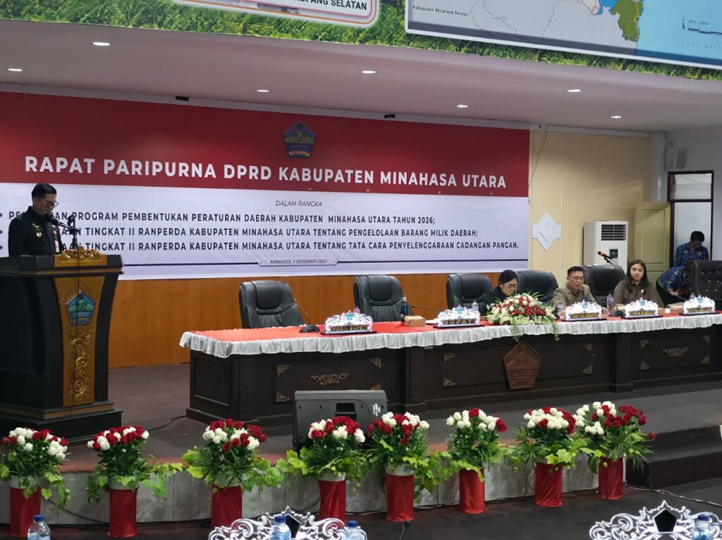 Tiga Agenda Utama Rapat paripurna yaitu membahas terkait, Penetapan Program Pembentukan Peraturan Daerah (Propemperda) Kabupaten Minahasa Utara Tahun 2026, Pembicaraan Tingkat II Rancangan Peraturan Daerah (Ranperda) tentang Pengelolaan Barang Milik Daerah serta Pembicaraan Tingkat II Ranperda tentang Tata Cara Penyelenggaraan Cadangan Pangan.